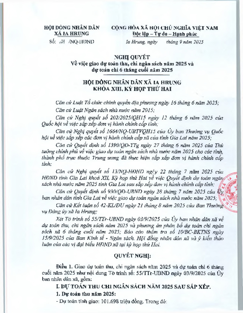 | Số hiệu | 21/NQ-HĐND | Cơ quan ban hành | HĐND xã Ia Hrung |