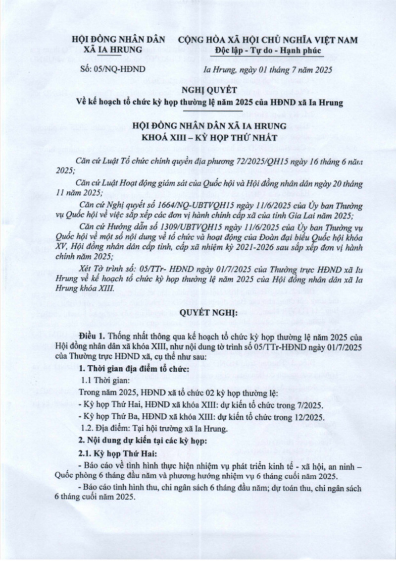 | Số hiệu | 05/NQ-HĐND | Cơ quan ban hành | HĐND xã Ia Hrung |