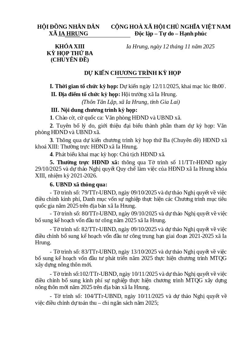 | Tiêu đề văn bản | DỰ KIẾN CHƯƠNG TRÌNH KỲ HỌP | ||