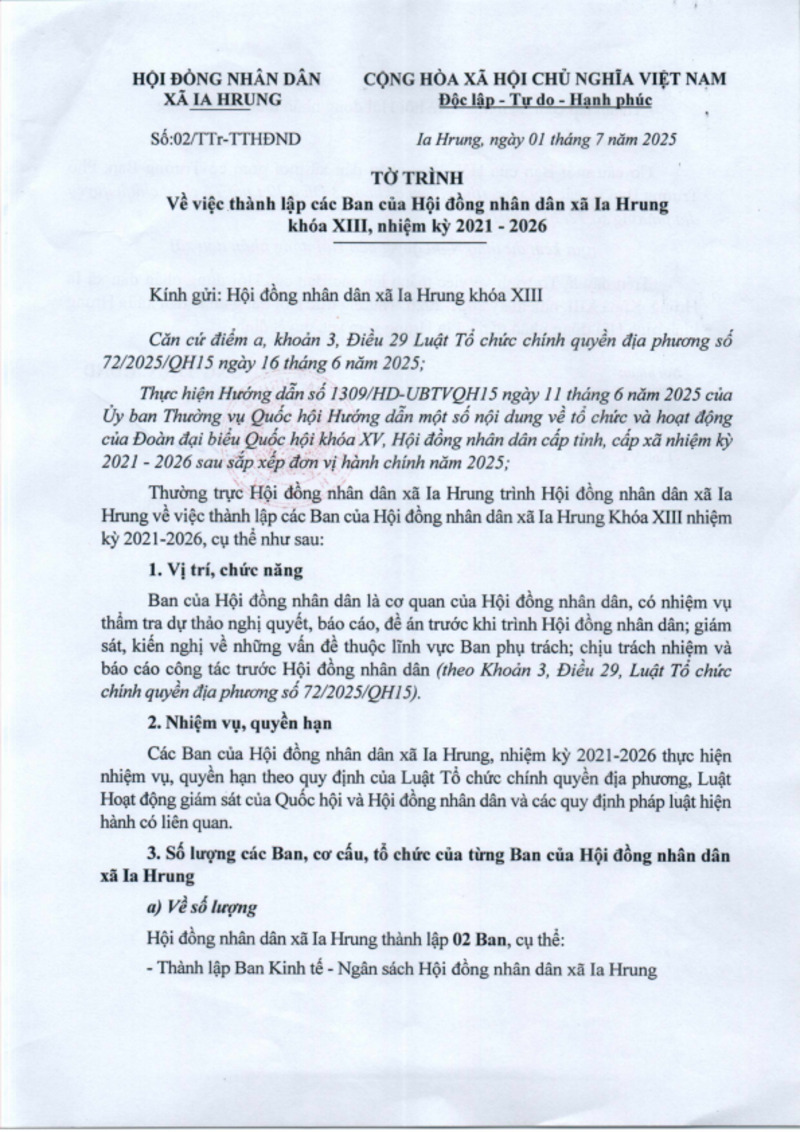 | Số hiệu | 02/TTr-TTHĐND | Cơ quan ban hành | HĐND xã Ia Hrung |