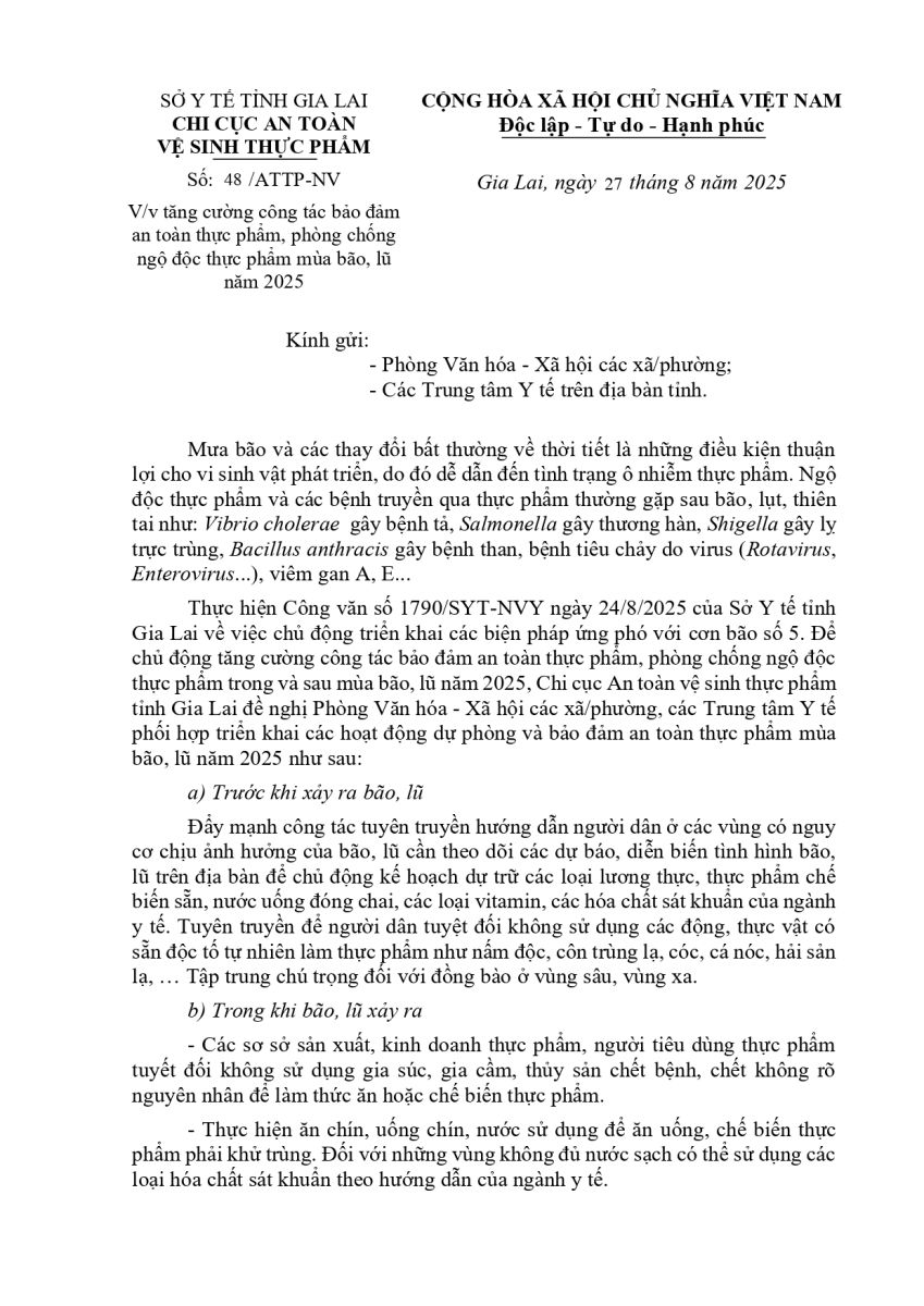 Thứ sáu, 29/08/2025 | 08:04 A- A A+ | Tăng cường công tác bảo đảm an toàn thực phẩm, phòng chống ngộ độc thực phẩm mùa bão, lũ năm 2025 Chia sẻ Đọc bài Lưu Nguồn:Sở Y Tế - Chi cục an toàn vệ sinh thực phẩm Sao chép liên kết