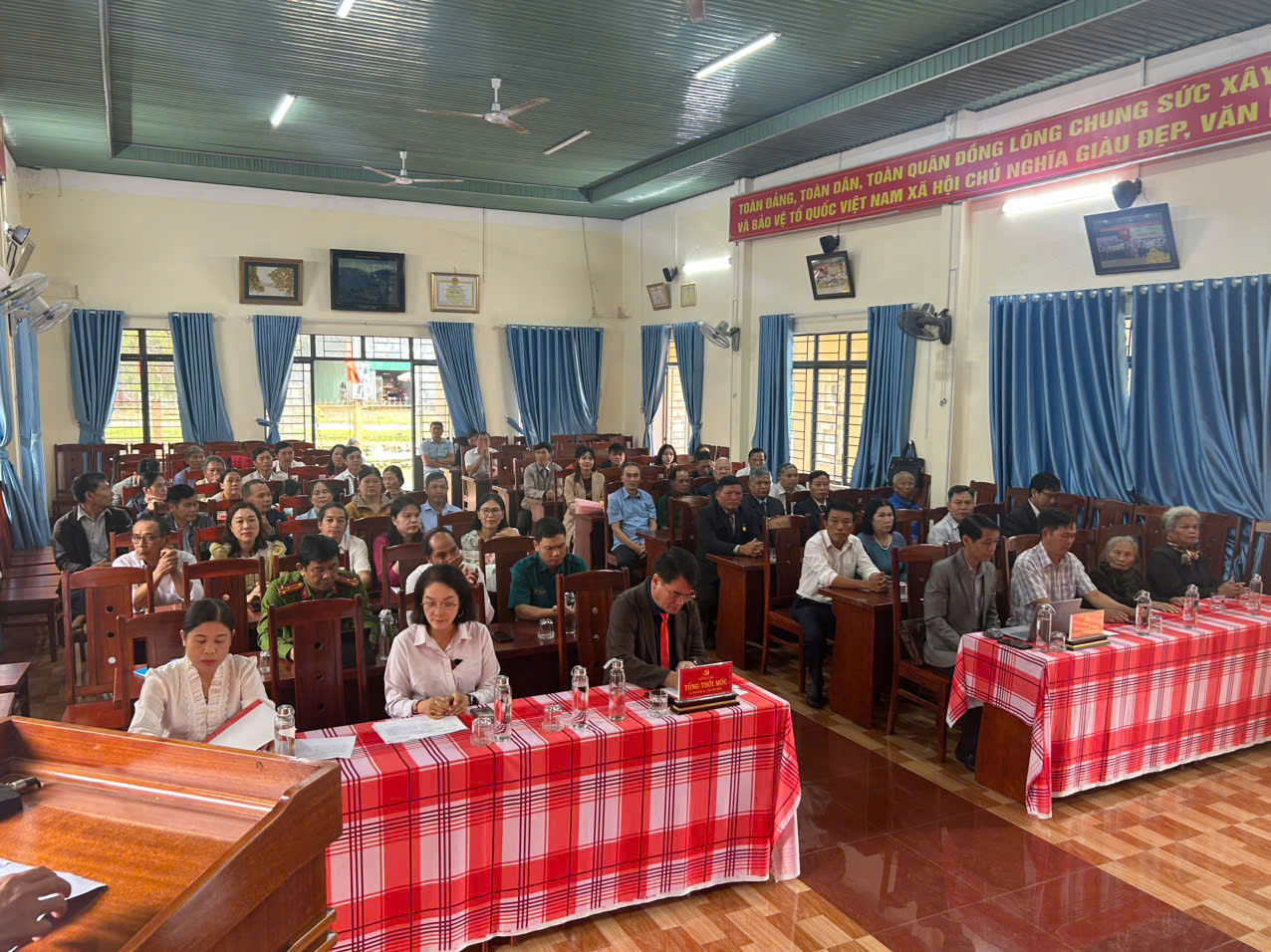 Đồng chí Tống Thới Mốc, Bí thư Đảng ủy, Chủ tịch Hội đồng nhân dân xã phát biểu tại buổi Lễ. Huy hiệu Đảng là phần thưởng cao quý, là sự ghi nhận của Đảng và Nhà nước đối với những đóng góp, cống hiến của các đồng chí trong suốt những năm tháng đi theo cách mạng. Mỗi tấm huy hiệu được trao hôm nay, dù là 30, 40, 45, 50 hay 60 năm tuổi Đảng, đều là minh chứng sống động cho lòng trung thành, kiên định và ý chí sắt đá của các đồng chí với lý tưởng cộng sản, với sự nghiệp xây dựng và bảo vệ Tổ quốc. Chúng ta, những người đi sau, xin bày tỏ lòng biết ơn sâu sắc và sự kính trọng vô hạn đối với các thế hệ đi trước. Các đồng chí đã dành trọn cả tuổi thanh xuân, nhiệt huyết của mình để chèo lái con thuyền cách mạng Việt Nam, vượt qua bao khó khăn, gian khổ, để có được một đất nước hòa bình, độc lập như ngày hôm nay.