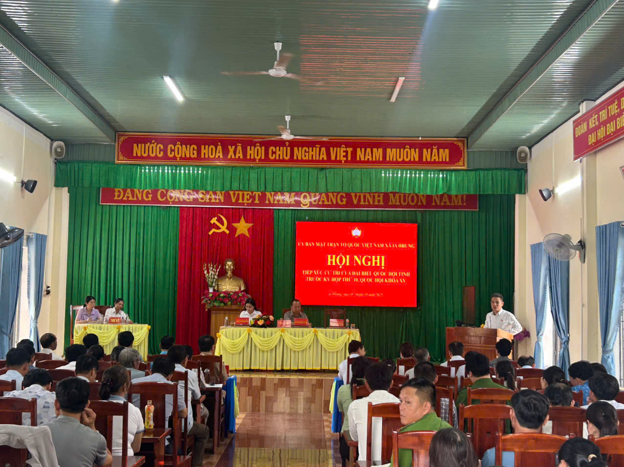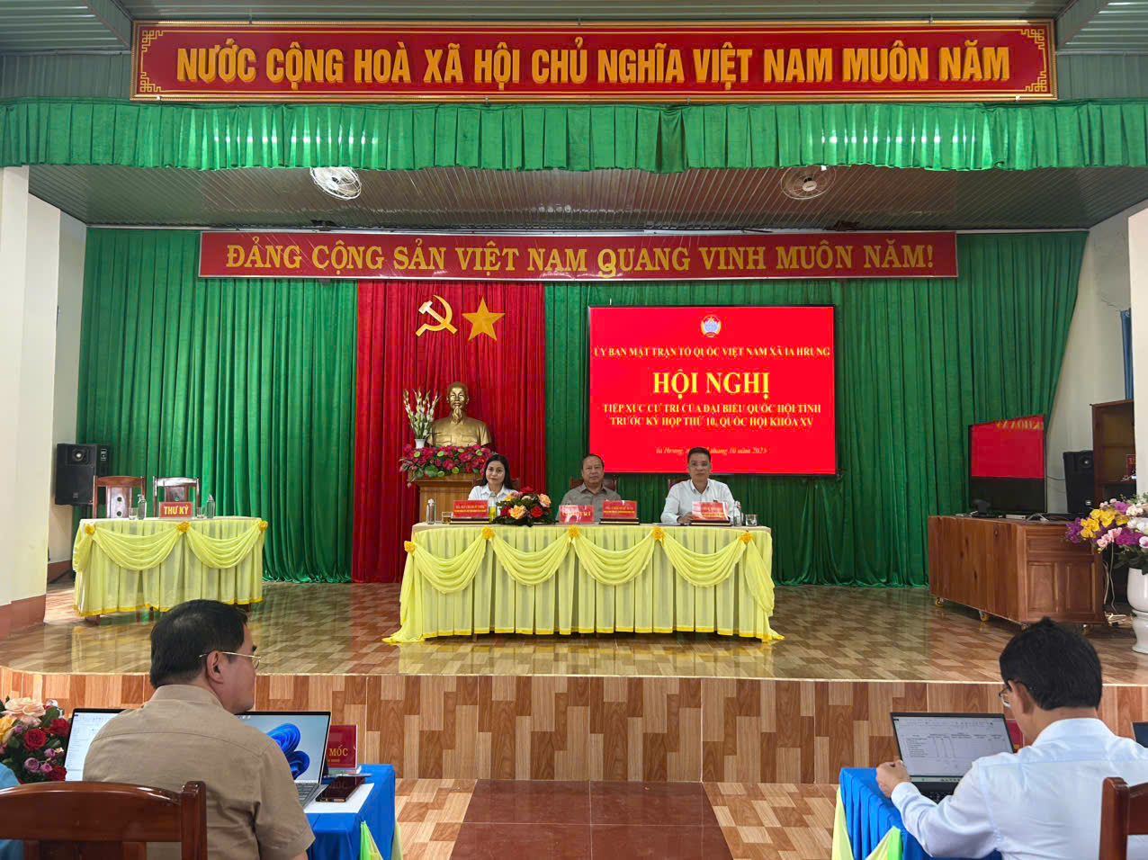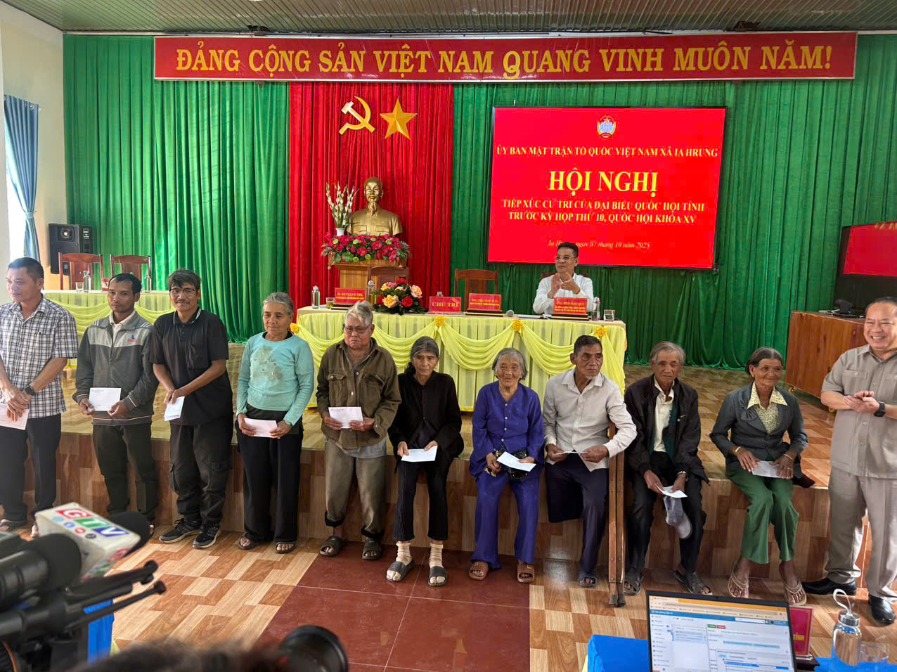 Tại buổi tiếp xúc, cử tri xã Ia Hrung đã bày tỏ tâm tư, kiến nghị liên quan đến đời sống dân sinh, chính sách an sinh xã hội và phát triển kinh tế địa phương. Đại biểu Quốc hội đã lắng nghe, ghi nhận và giải đáp các ý kiến của cử tri, đồng thời cam kết sẽ chuyển tải đến các cơ quan có thẩm quyền để xem xét, giải quyết.