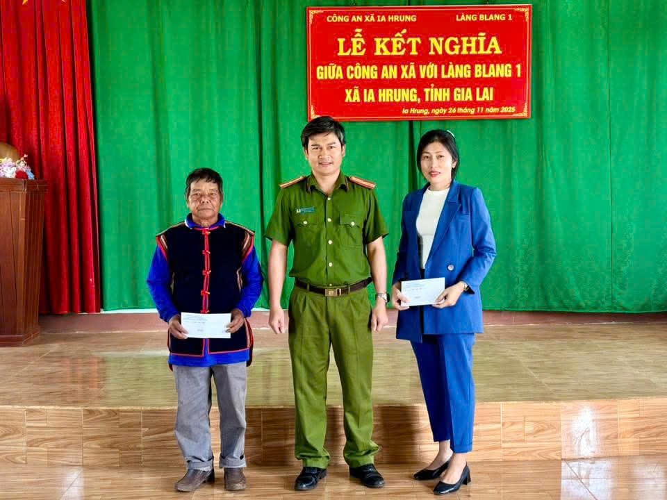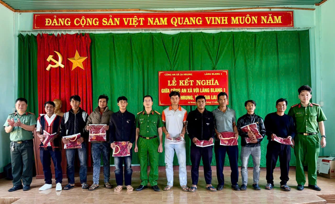 Nhân dịp này, Công an xã đã tổ chức vận động các công ty, doanh nghiệp đứng chân trên địa bàn trao tặng 10 phần quà, trị giá 03 triệu đồng (gồm nhu yếu phẩm như dầu ăn, nước mắm, gia vị…), 10 mũ bảo hiểm, 10 bộ quần áo thể thao và 08 thùng sữa trị giá 1,5 triệu đồng cho các hộ dân, thanh niên và các em học sinh có hoàn cảnh đặc biệt khó khăn tại làng Blang 1. Thông qua hoạt động kết nghĩa, thể hiện sự quan tâm của lực lượng Công an xã, các công ty, doanh nghiệp đứng chân trên địa bàn đến người dân địa bàn làng Blang 1 nói riêng và xã Ia Hrung nói chung. Qua đó, nâng cao hơn nữa tinh thần đoàn kết, tương trợ lẫn nhau, khẳng định quyết tâm của Công an xã, chính quyền địa phương và Nhân dân trong việc chung sức xây dựng xã Ia hrung ngày càng văn minh, giàu đẹp, góp phần thực hiện thắng lợi Nghị quyết Đảng bộ xã Ia Hrung lần thứ I, nhiệm kỳ 2025 – 2030./.
